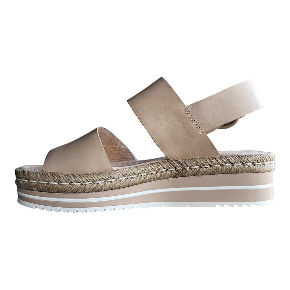 • Sturdy 1.5″ mixed material flatform with espadrille detailing