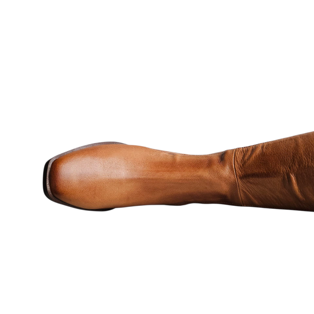 Please note that the calf width measures just shy of 13.5″ in circumference at the top of the 14″ tall shaft, and the stretch panel will allow up to 14.5″ in circumference.  These measurements are based on the size 36 sample, and the calf circumference will increase slightly with each foot size.