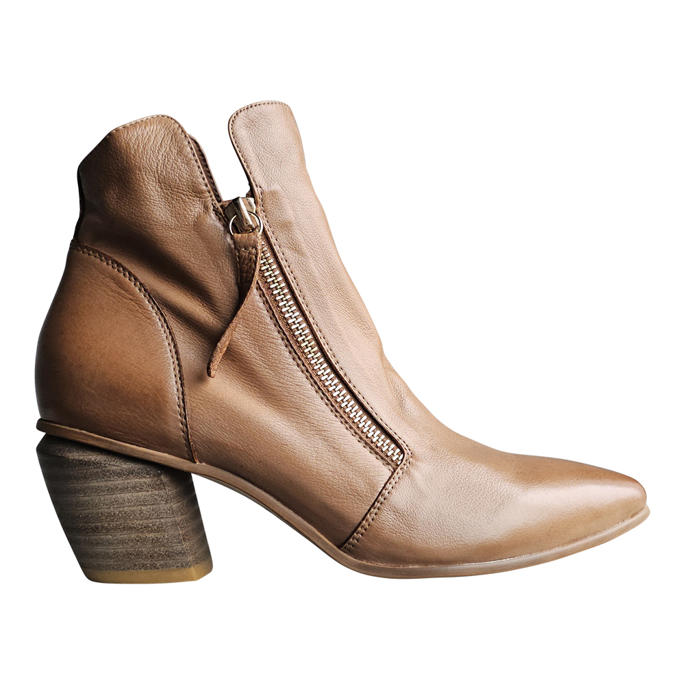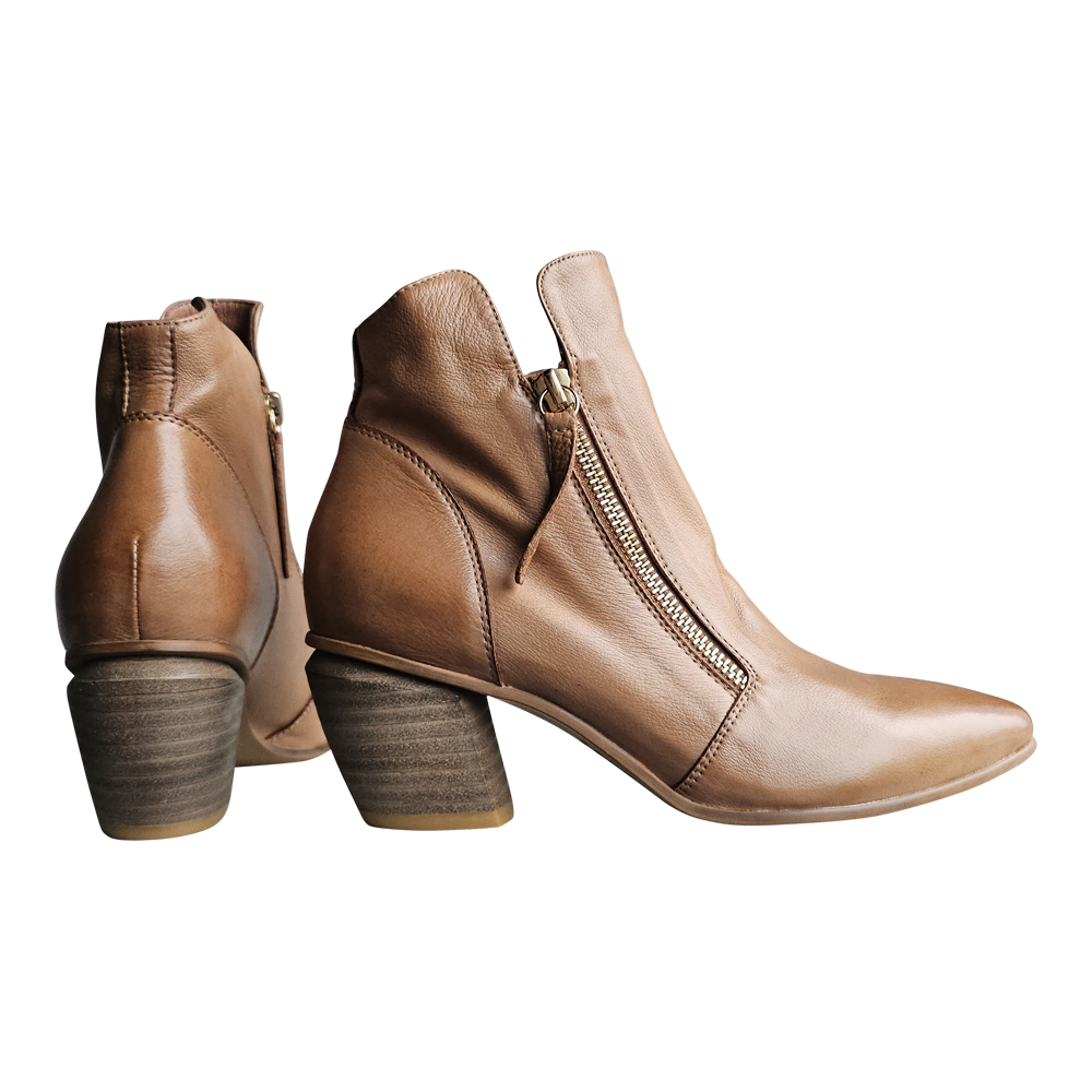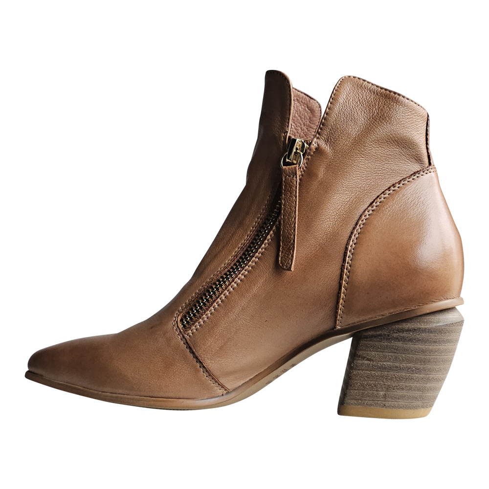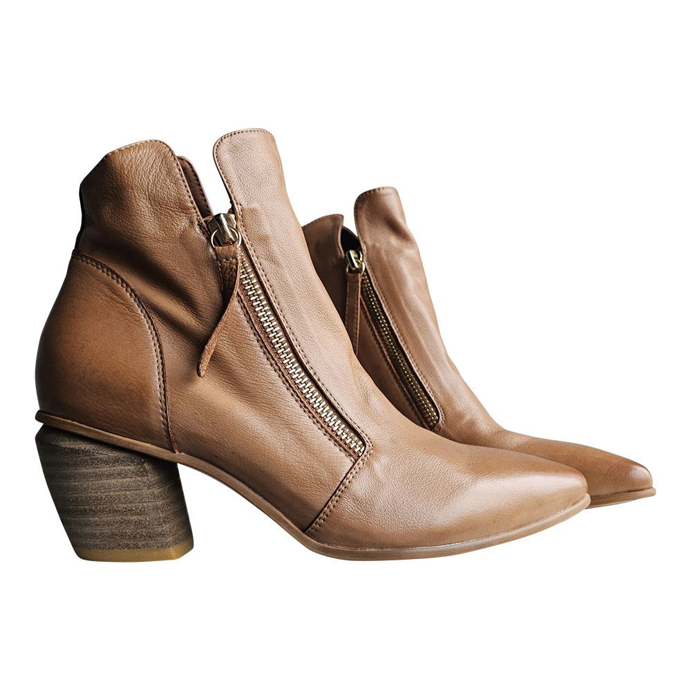 Sized in European, JAZZY fits true to EURO size for length.  Even though the toe is pointed, there is nothing narrow about this boot. They are best suited for an average to slightly above-average-width foot, however, the dual zips up the front of the foot make for a snug fit across the instep.  If you have struggled with your instep in the past, and/or you have a sturdier ankle, you will want to try this one on in person to confirm it will work for your foot