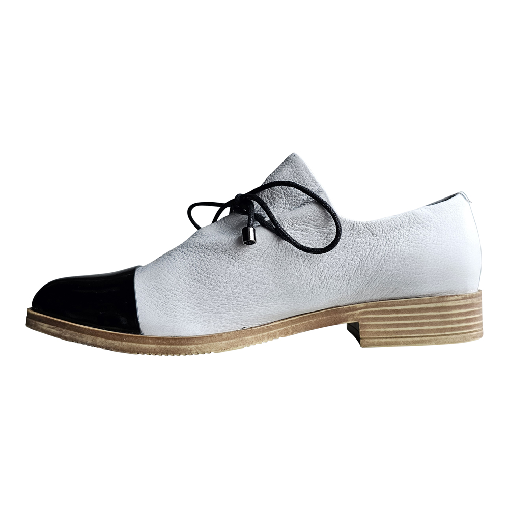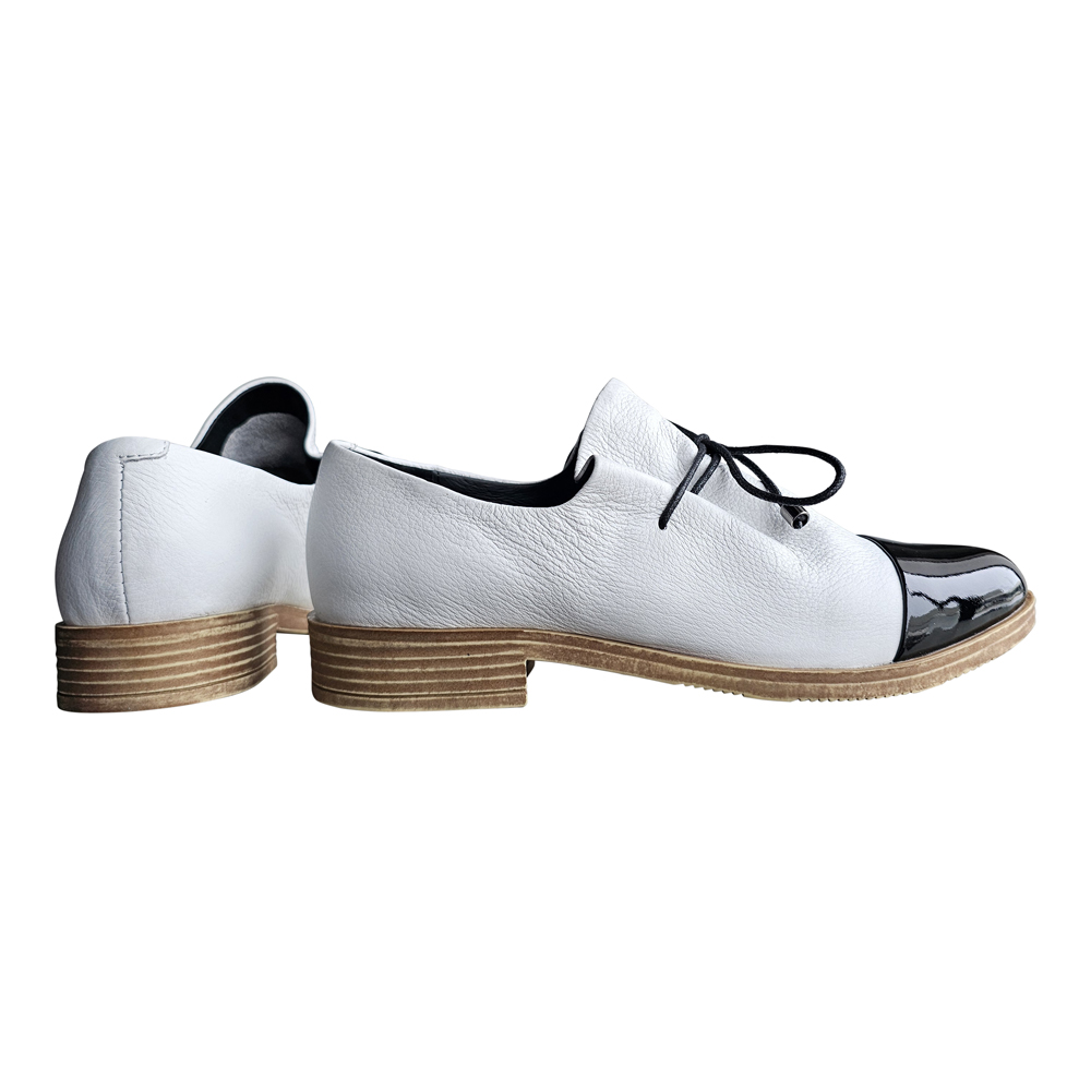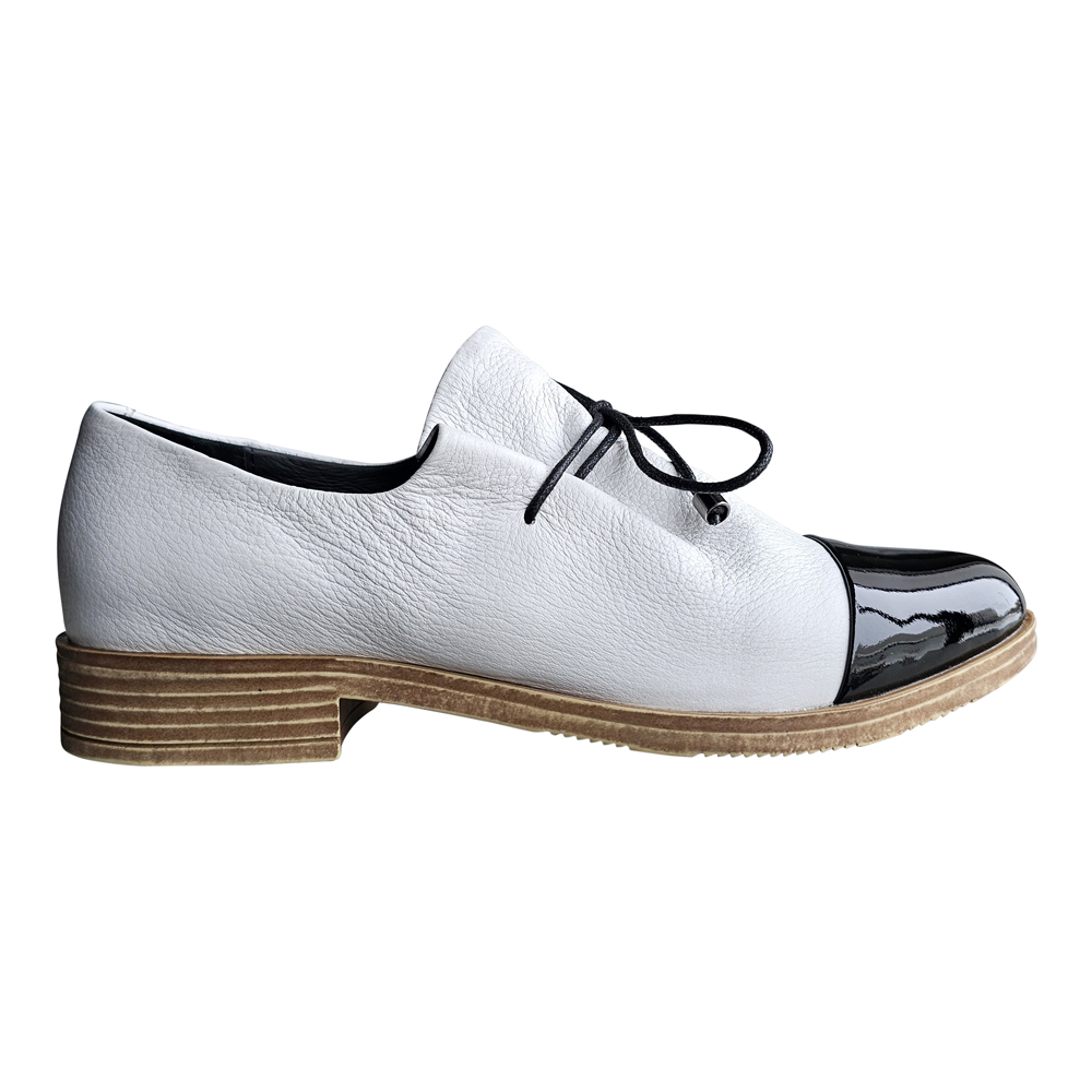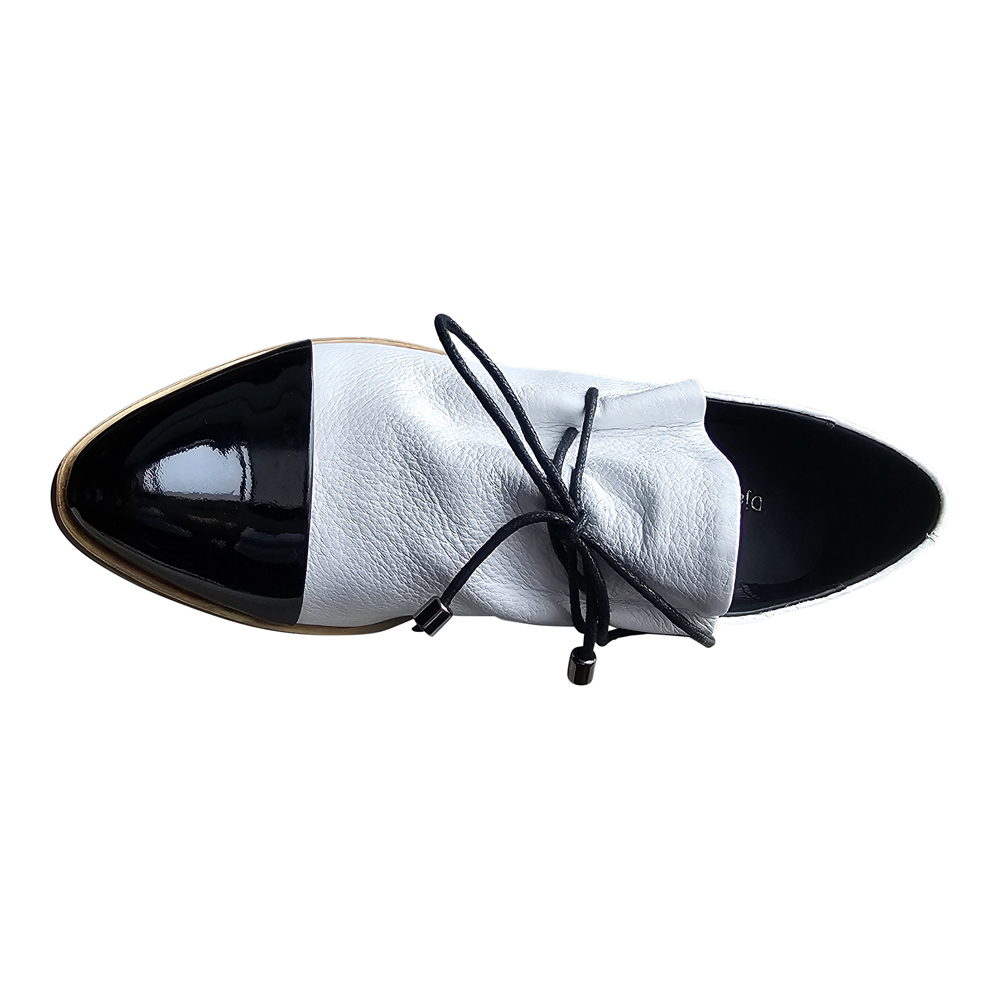 Sized in European, Kotty fits true to size in the length.  Even though the toe is somewhat pointed, there is nothing narrow about this shoe  The upper has a tie that allows for a somewhat custom fit in the instep.  They are best suited for an average to above-average width foot.