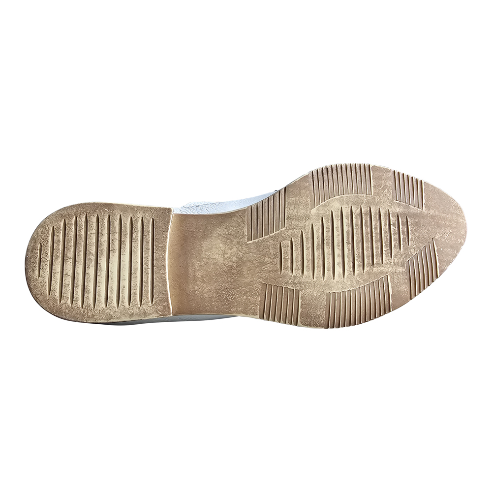 • Faux stacked heel with rubber textured sole