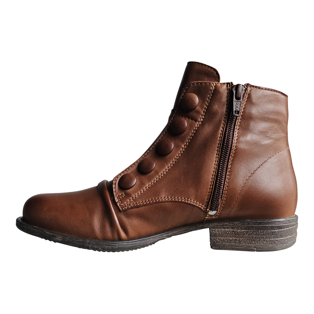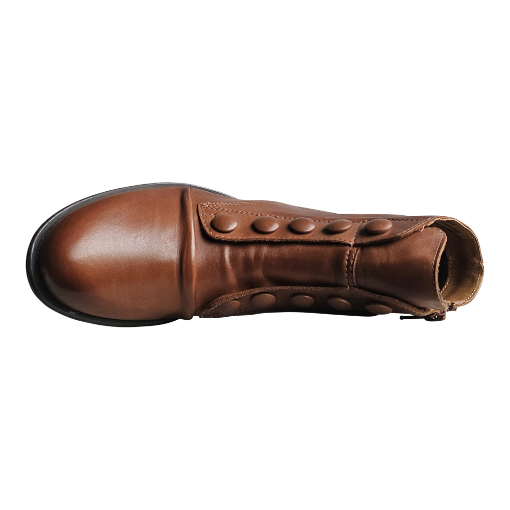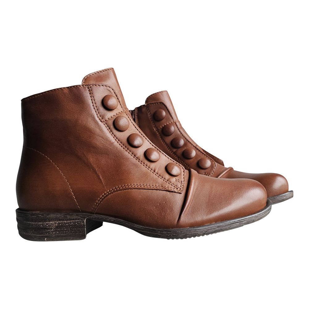 Our Louise bootie is available in American full and half sizes and fits true to size in length. It is best suited for average to slightly narrower feet. If you have wider feet, it’s recommended to try them on in person to ensure a good fit. The instep is average, but due to the zipper placement, putting them on may be challenging for those who wear thick athletic socks.