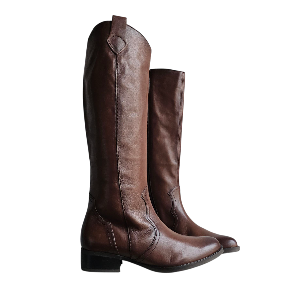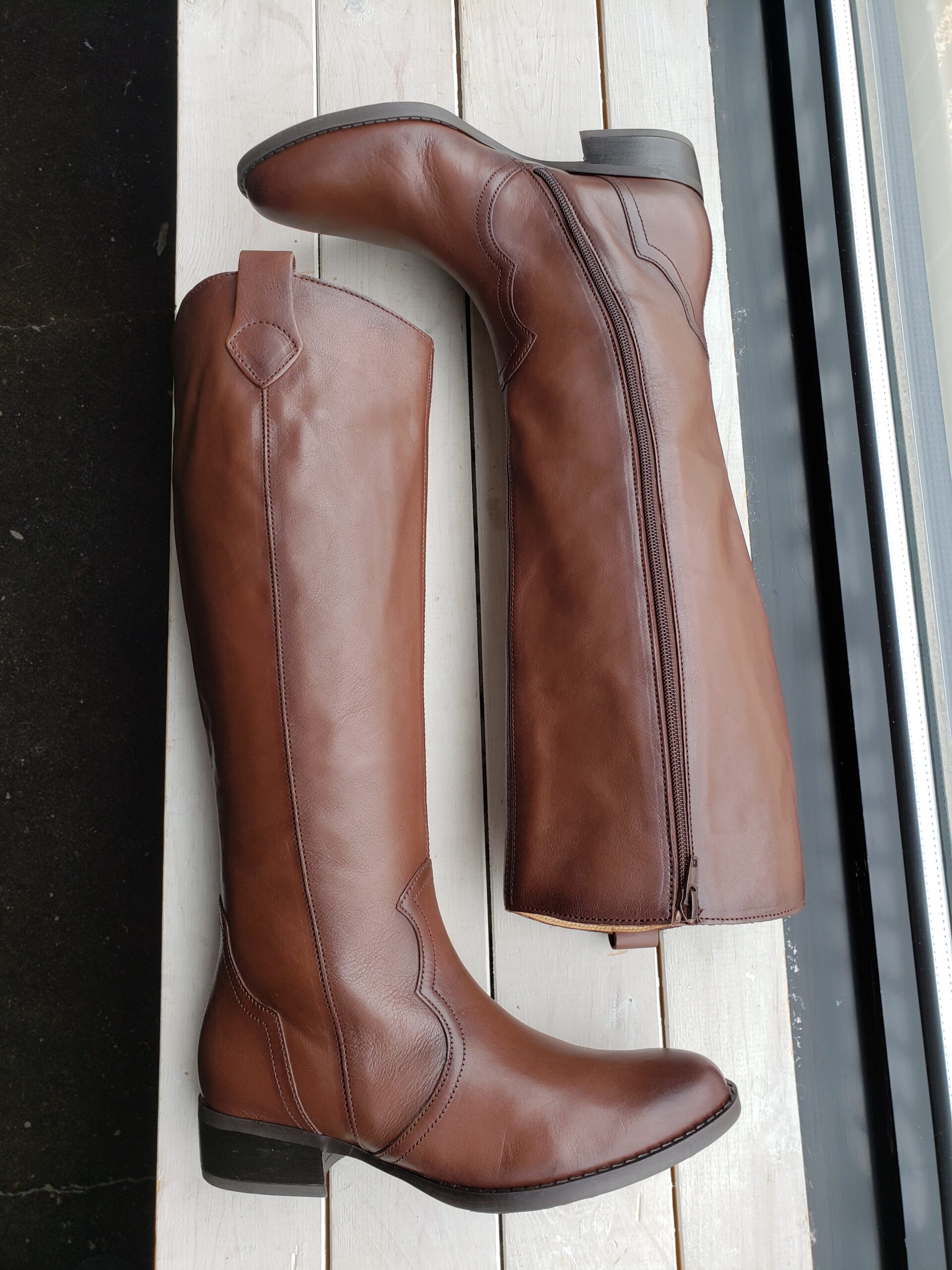 Please note that the calf width measures just shy of 15.25″ in circumference at the top of the 14.5″ tall shaft. These measurements are based on the size 6 sample, and the calf circumference will increase slightly with each foot size.