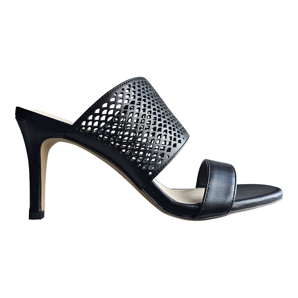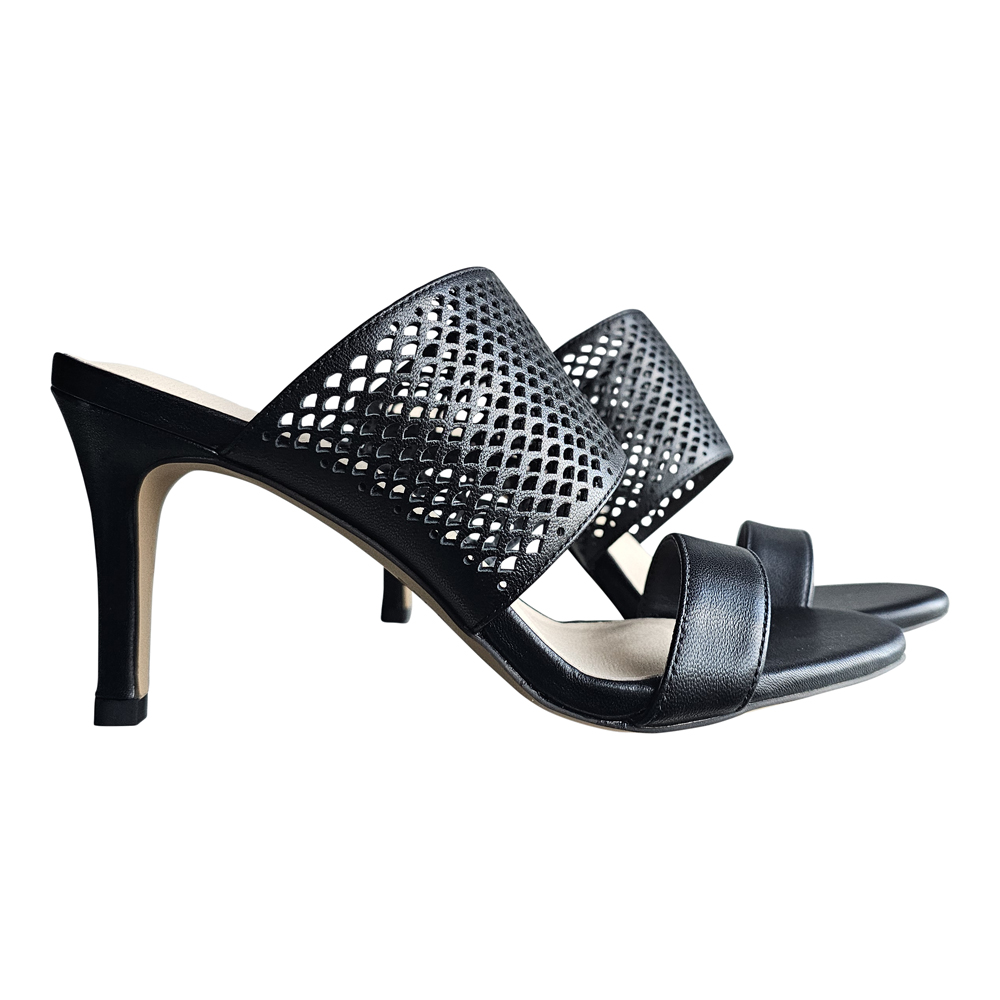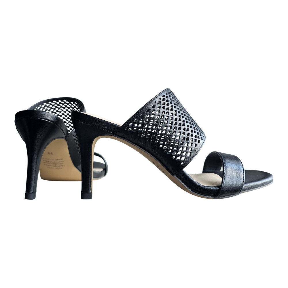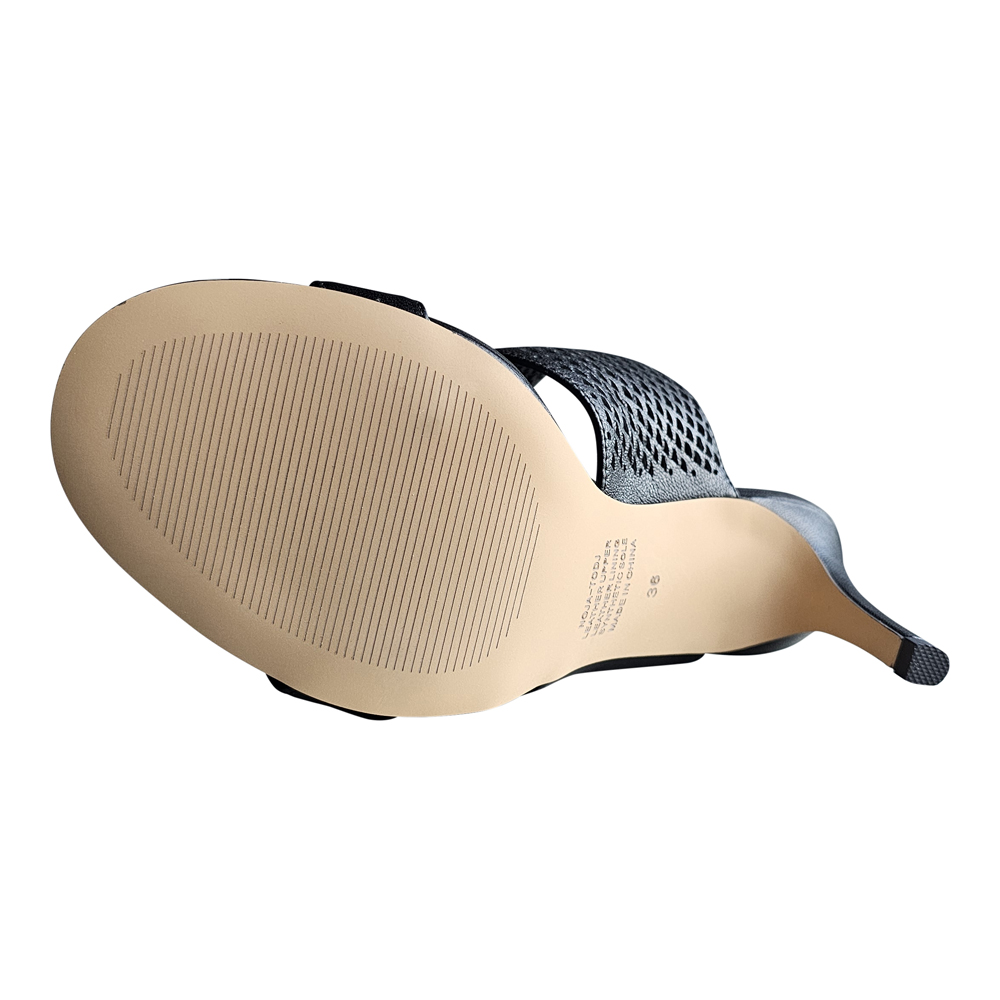 Sized in European, this stiletto sandal fits true to size in the length. They are best suited for an average-width foot, and due to the shape of the toe box, they will not work for a wider foot, regardless of what size you choose.