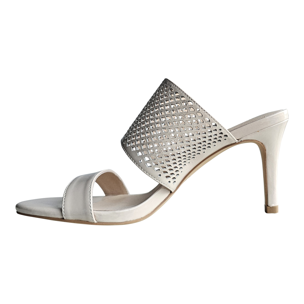Sized in European, this stiletto sandal fits true to size in the length. They are best suited for an average-width foot, and due to the shape of the toe box, they will not work for a wider foot, regardless of what size you choose.