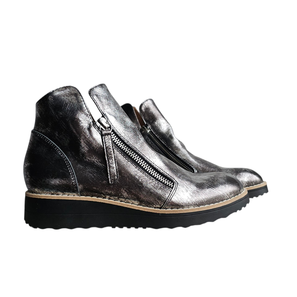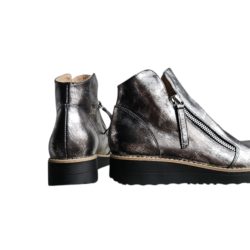 Sized in European, OHMY fits true to size in length.  The width is best suited for an average to slightly above-average foot, but due to the zipper placement, they may not be comfortable on a truly wider foot, regardless of the chosen size.  There is no option for adjustment in the instep.