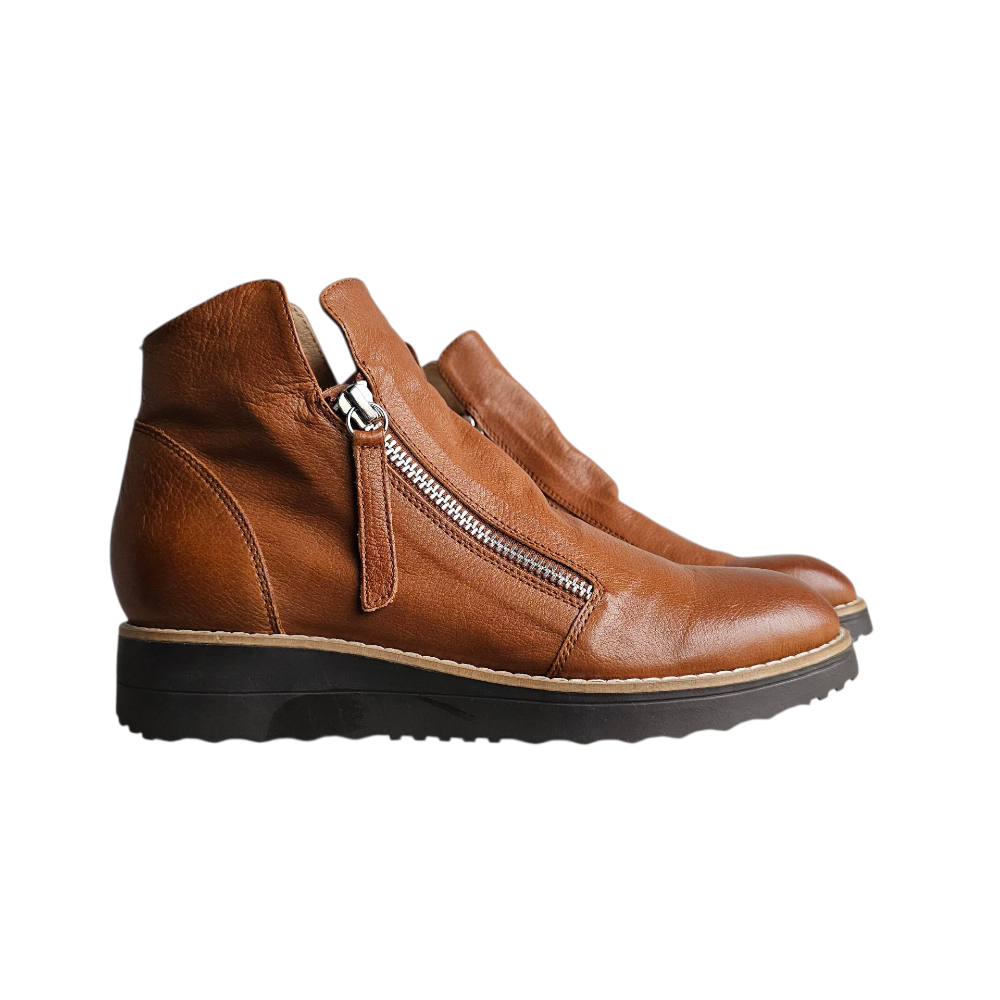 Sized in European, we find them to fit true to size in the length.  The width is best suited for an average to slightly above-average width foot, but due to the zipper placement, they are not comfortable on a truly wider foot, regardless of what size you choose.  There is no option for adjustment in the instep.