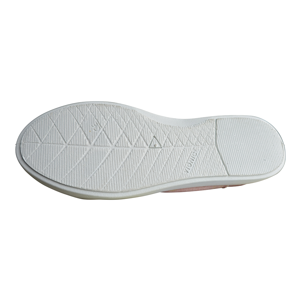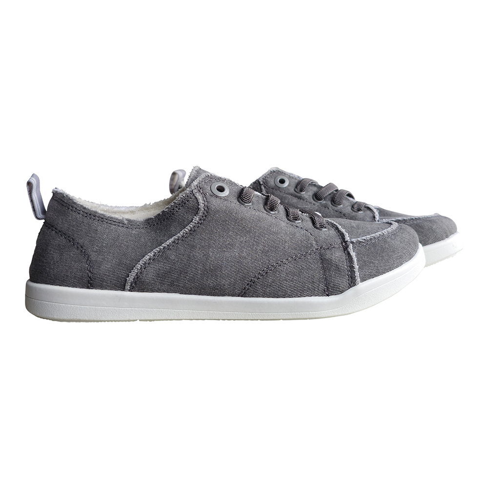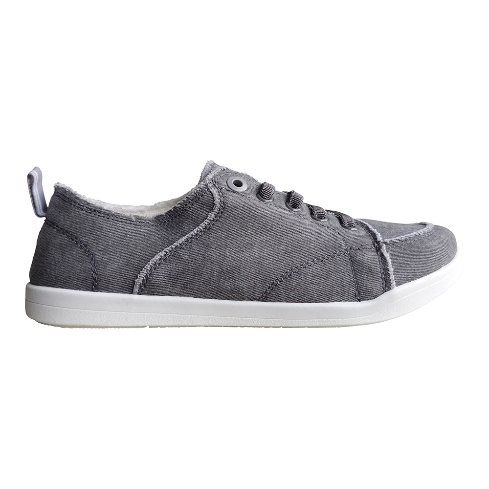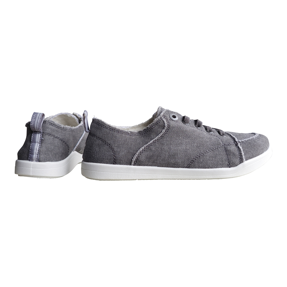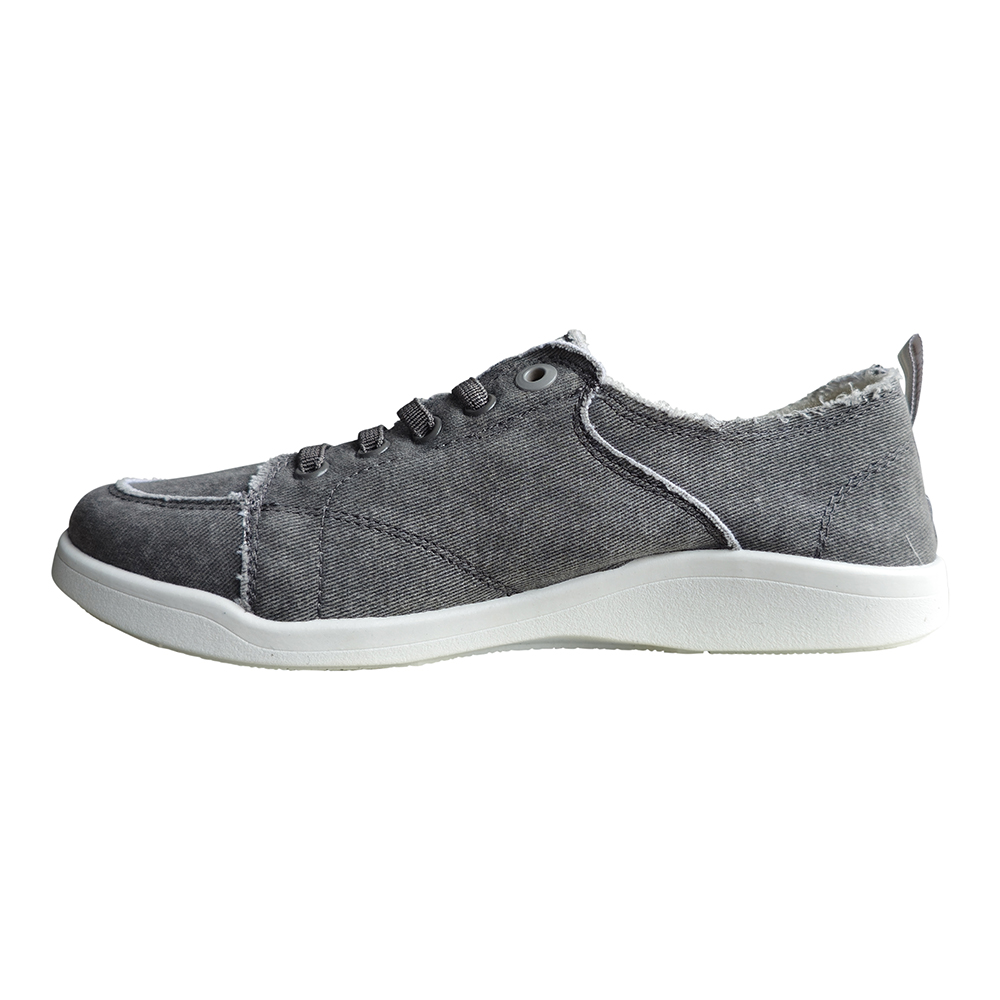 Sore cranky feet are zero match for the supportive comfort you will find when you wear these slip-on cuties from Vionic. No joke, we are talking softly cushioned EVA footbeds, paired with the corrective arch support you expect from Vionic. We call this style -Pismo- and those laces are not real laces, they are a secured stretch-elastic, so you just slip-on and go!! You would think that elastic would make them better for a wide foot, but no, not so much. If you have a slightly wider foot, average width, or slightly narrower foot, they will work for you. We’ve had them on a few truly wide feet, and the elastic bits on top do not stretch enough to be comfortable. Wide feet do better in the Vionic Malibu. As for length, I am wearing exactly the same size I do in my athletic shoes and so far everyone we have had them on has been the same. This is not the sort of shoe you want to -size up- in just to be safe, because then the arch support will be in the wrong spot.