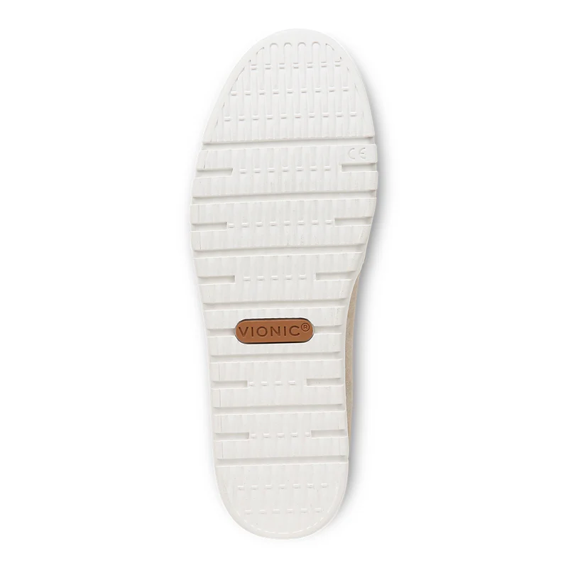 How does she fit? I base our Vionic Collection on American full and half sizes and have found Uptown Leather to fit true to size for length.  They are most comfortable when worn with a thin socket or barefoot, and the width is best suited for an average to slightly above-average width foot.  I do have to note that this style will be a struggle for anyone with a fuller top of the foot (aka instep). Vionic did not give us any option for adjustment, and there is not even a wee stretch panel to help out.  It either fits you, or it doesn’t—no middle ground.