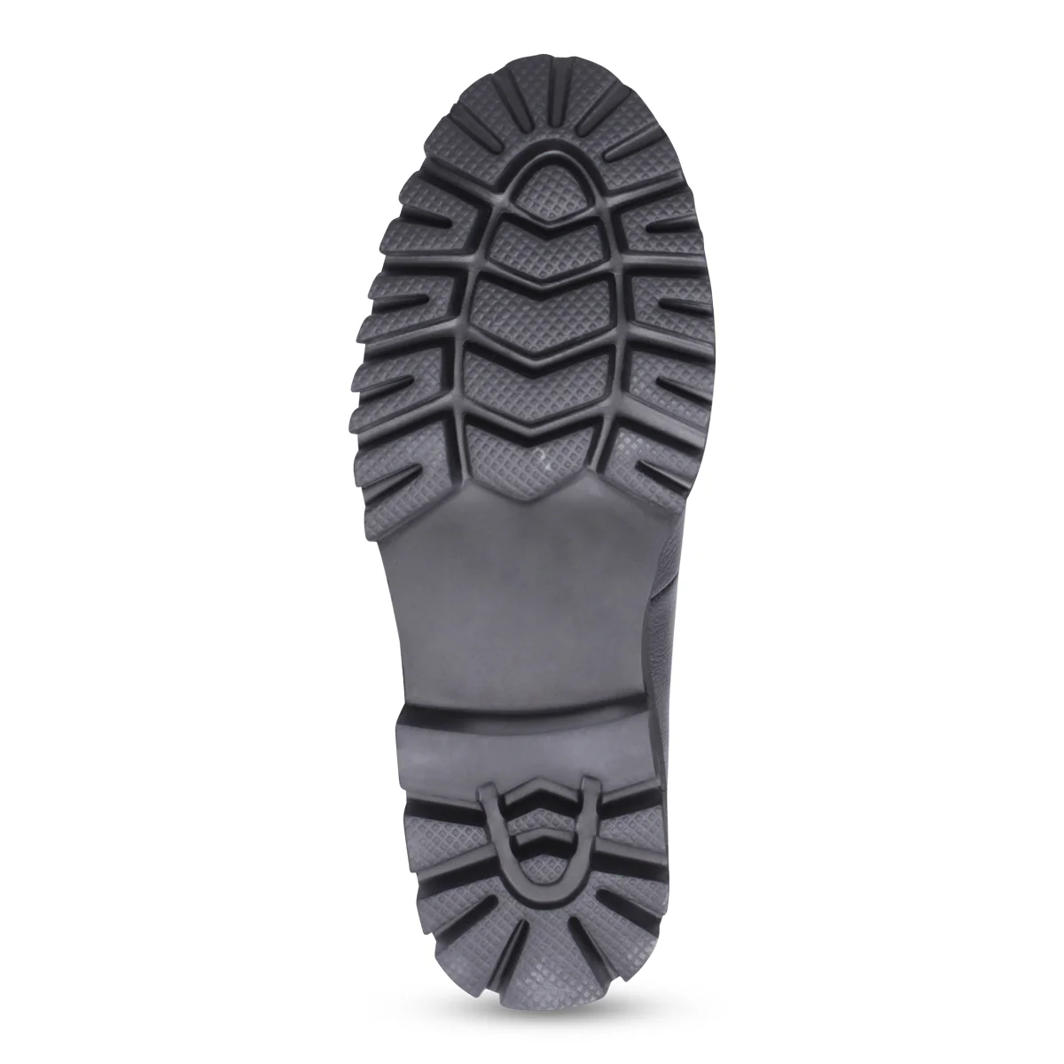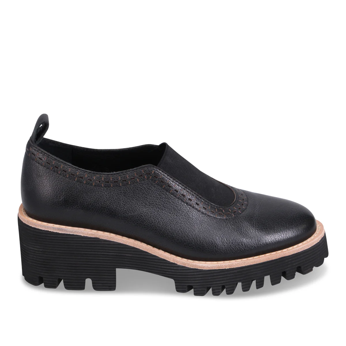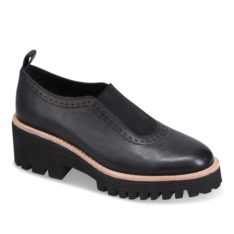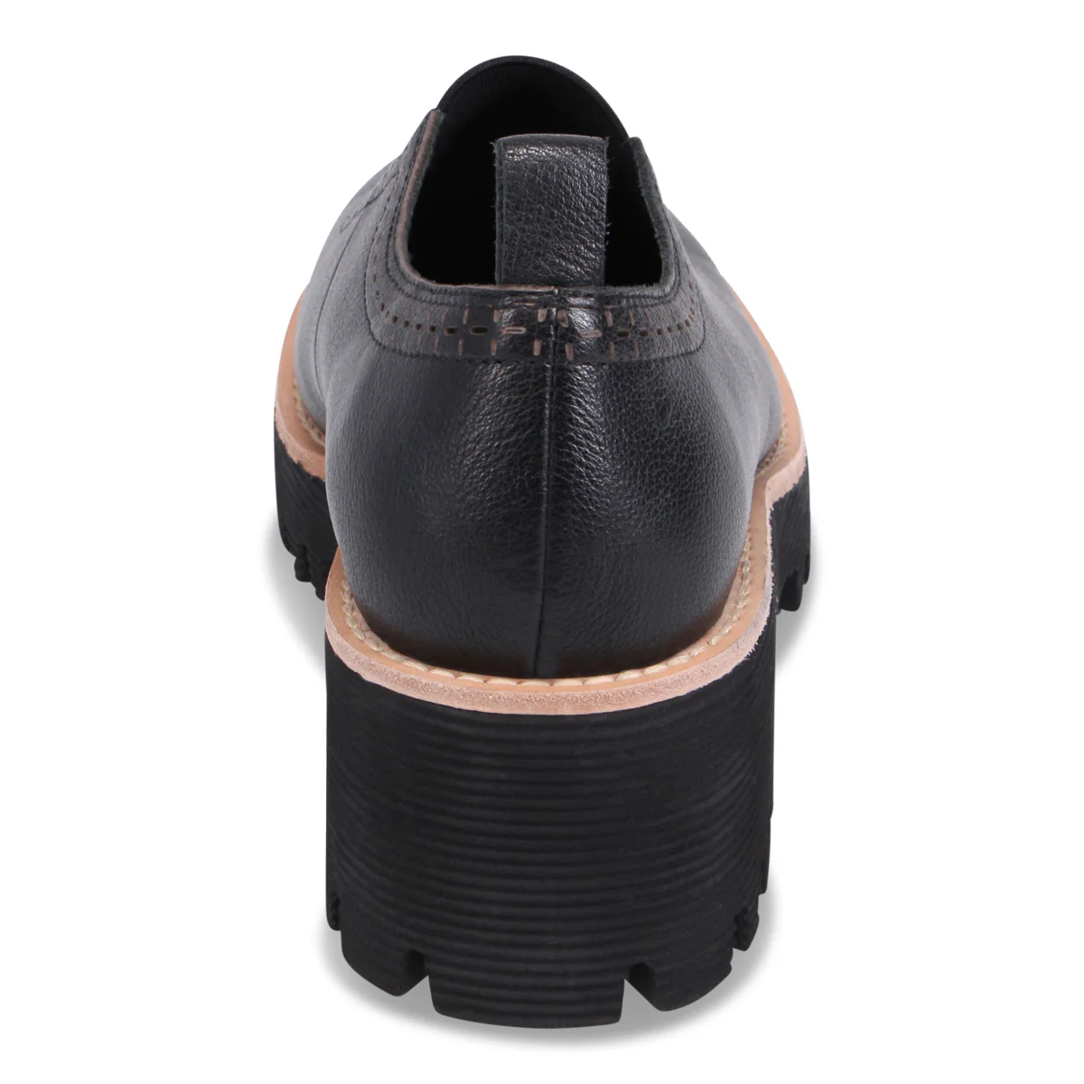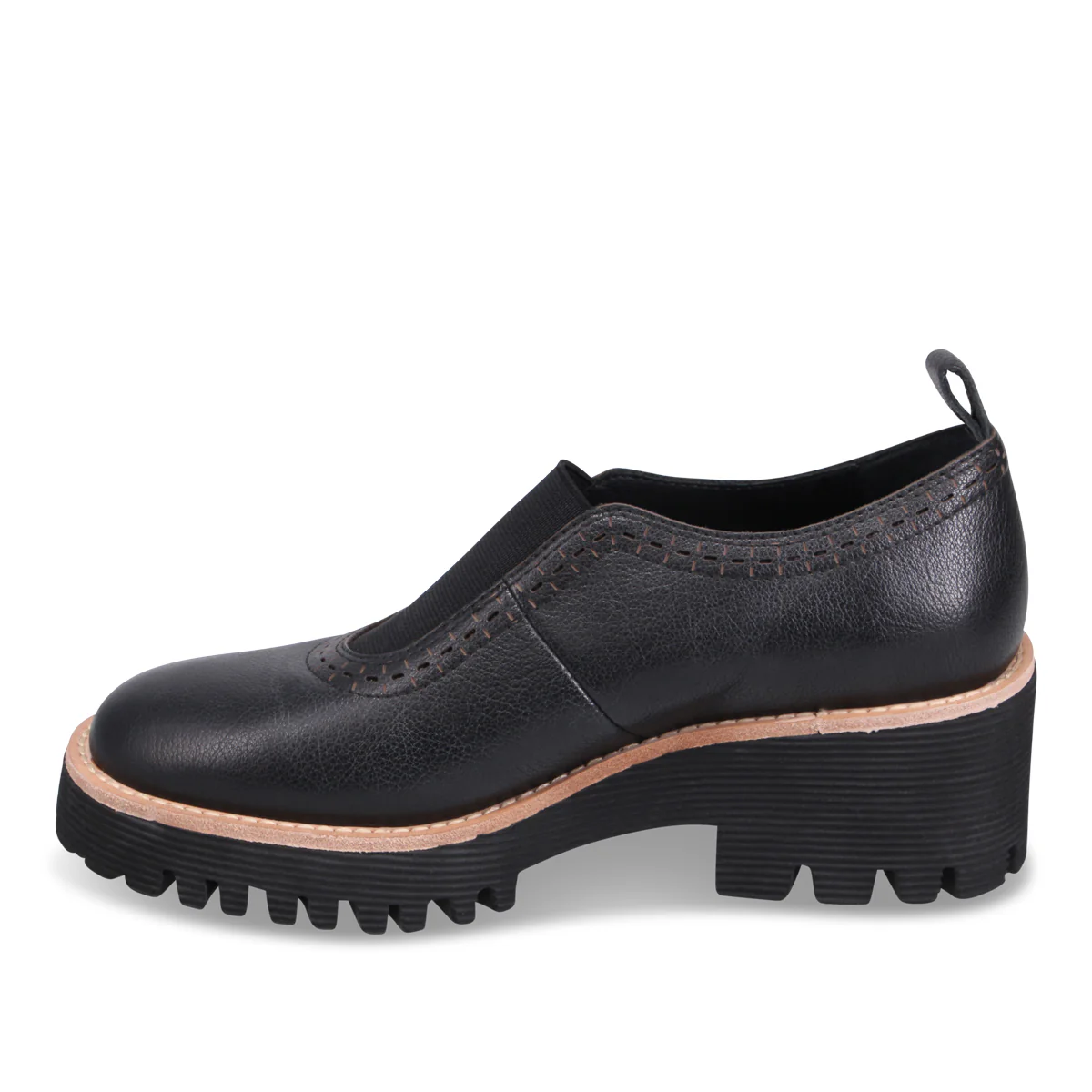 - Thick 2″lugged heel paired with a matching 1″ platform