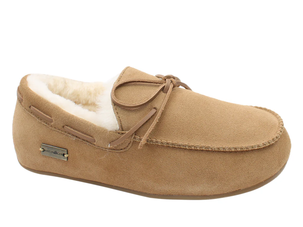 A new unisex style from Haflinger, Yumah are wonderfully warm and comfortable sheepskin slippers.  A classic moccasin style with the cozy, soft feel of sheepskin.